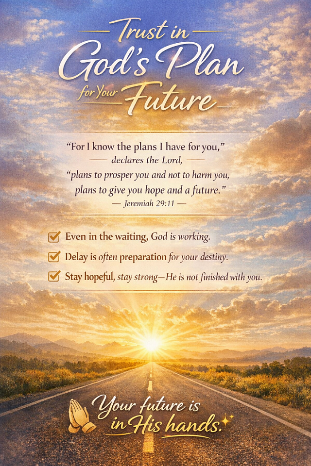 Even when the journey feels uncertain, God’s plan is always active and is predestined to manifest. What looks like delay is often preparation—your future is full of hope, purpose, and promise. Stay faithful. Stay encouraged. God is not finished with you. ✨🙏